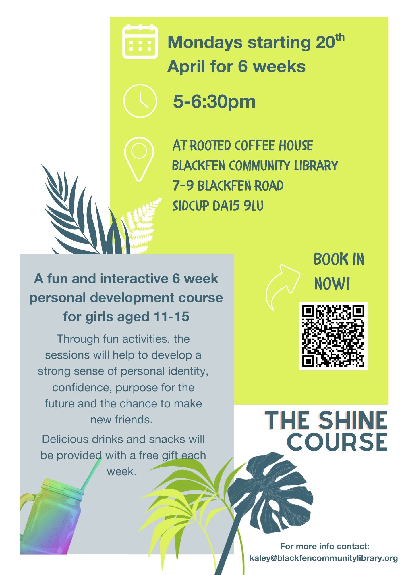 The SHINE Course is starting again at Blackfen Community Library on Monday 20th April 2026. If you have girls aged 11-15 (at secondary school) then sign them up now via Eventbrite!